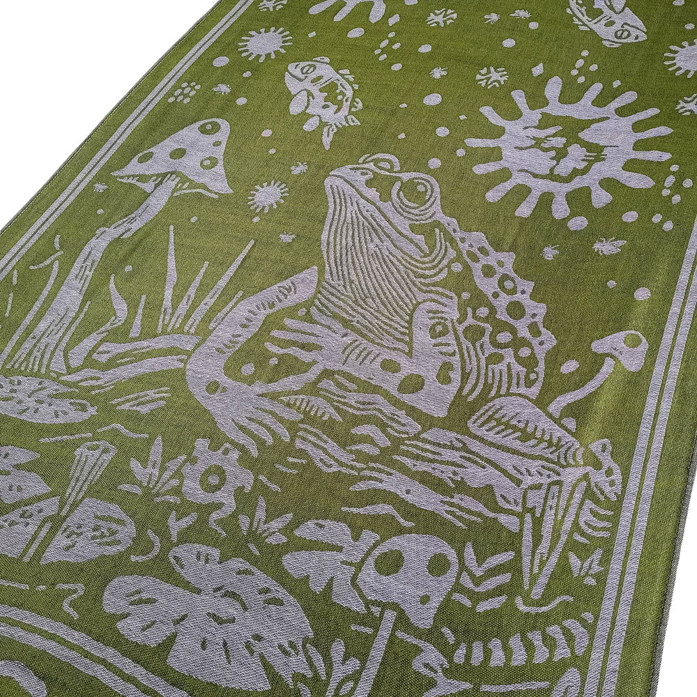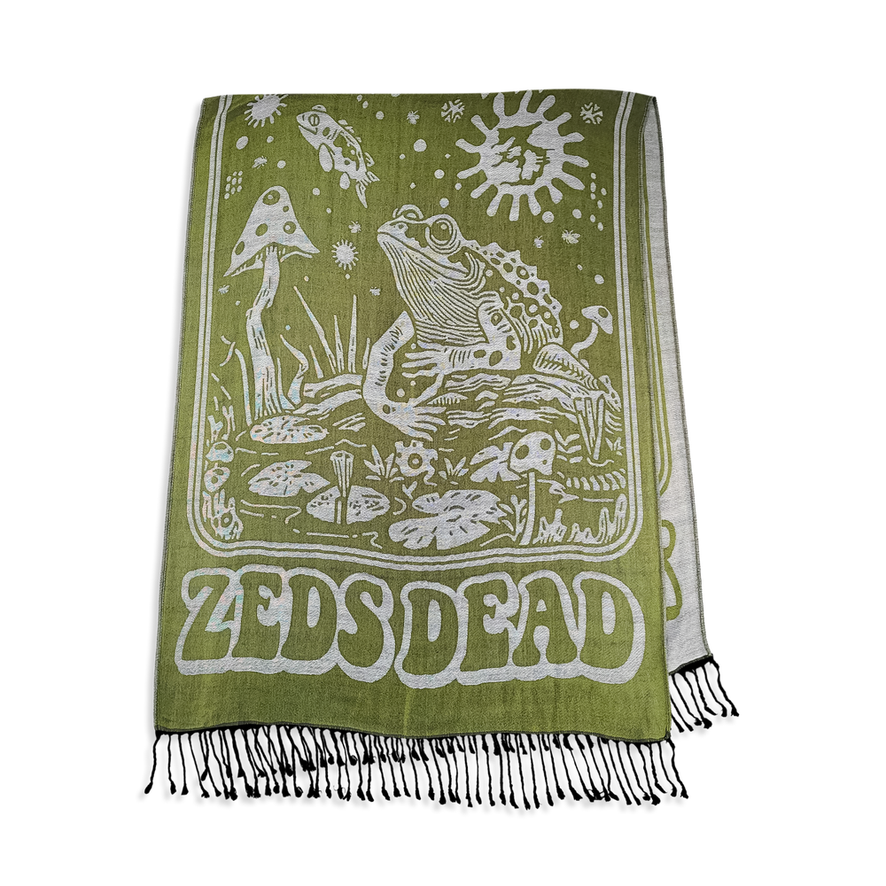 Zeds Dead - Frog Noizes Knit Pashmina. Custom knit construction and design. Measures approximately 70cm x 180cm.
