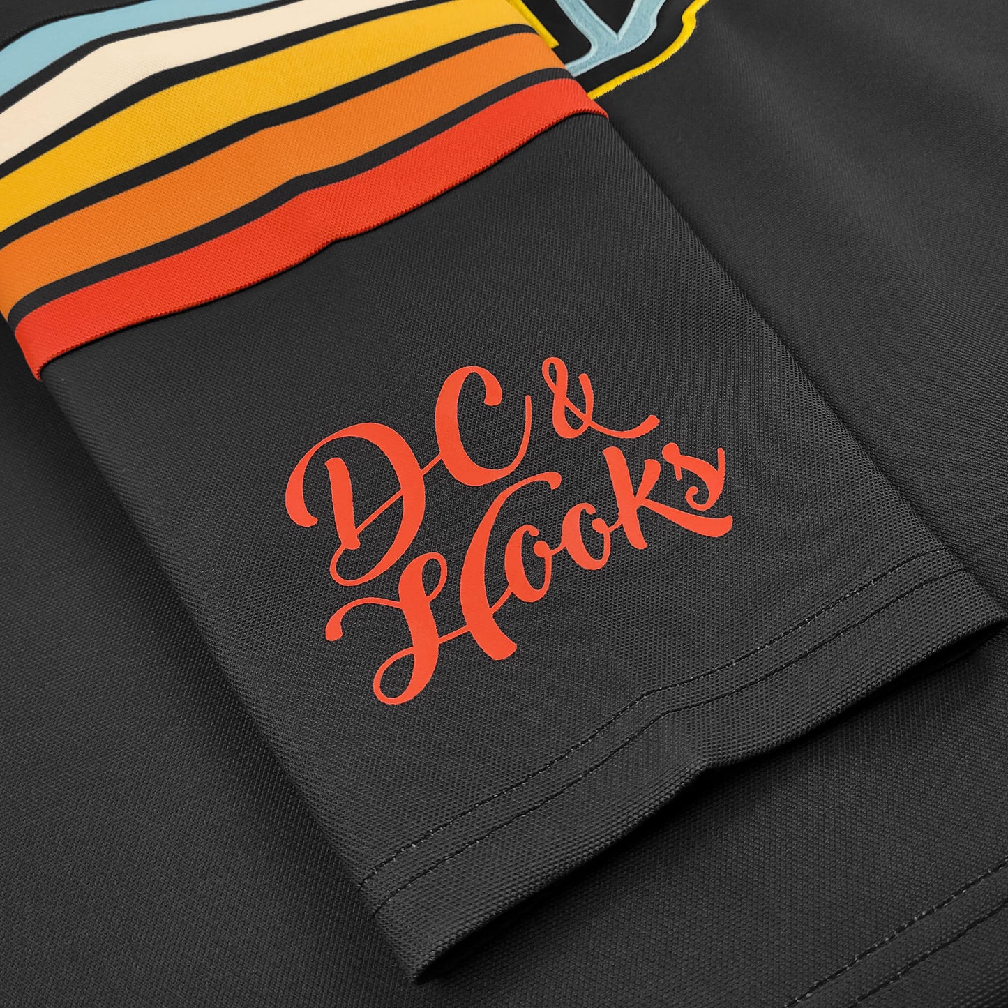 - Dye sublimated sleeve stripes and front rainbow designs